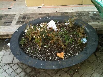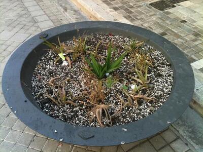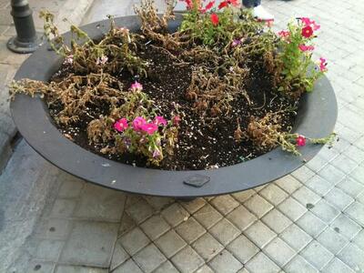 Άλλοι θα πλήρωναν ένα σεβαστό ποσό για να αποκτήσουν μια τέτοια ζαρντινιέρα, που θα έδινε άλλη όψη στο κατάστημα τους, σε έναν πεζόδρομο όπως η Ρήγα Φεραίου. Τις έβαλε ο δήμος, τις φύτεψε και ας πούμε πως τελικά, ναι (!) τις εγκατέλειψε.