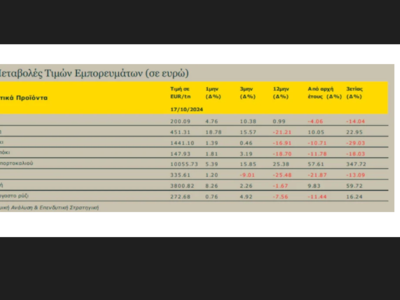 Το σιτάρι έκανε ένα «άλμα» από τα τέλη Αυγούστου, τον τελευταίο μήνα «χάνει» γύρω στο 1,5%, αλλά παραμένει 2% υψηλότερα από τα περσινά επίπεδα, χωρίς φυσικά να προσεγγίζει καν στα ιλιγγιώδη ύψη της περιόδου 2022/2023. Οι ανησυχίες σχετικά με τη συρρίκνωση της προσφοράς και το γεωπολιτικό ρίσκο παραμένουν όμως στο επίκεντρο, με τις εκτιμήσεις της αγοράς να κάνουν λόγο για πιθανή συνέχιση της αύξησης τιμών.
