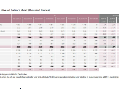 Η παραγωγή ελαιόλαδου στην ΕΕ αναμένεται να ανακάμψει περαιτέρω το 2024/25, εκτός εάν εμφανιστούν ακραίες καιρικές συνθήκες τους επόμενους μήνες, με κινητήρια δύναμη την ανάκαμψη της παραγωγής στην Ισπανία (σε περίπου 1,3 εκατ. τόνους, +50% και 65% μερίδιο), αλλά και στην Ελλάδα και στην Πορτογαλία. Αντίθετα, η Ιταλία ενδέχεται να έχει χαμηλότερη παραγωγή ακόμα και σε σχέση με πέρσι, μετά την ξηρασία και τους καύσωνες στον Νότο. Συνολικά, η παραγωγή ελαιόλαδου στην ΕΕ αναμένεται να φθάσει τους 2 εκατ. τόνους (+32% σε ετήσια βάση) και να προκαλέσει μείωση των τιμών, οδηγώντας σταδιακά σε ανάκαμψη της κατανάλωσης (+7%), ανάλογα με τον ρυθμό μεταβίβασης των τιμών στους καταναλωτές.