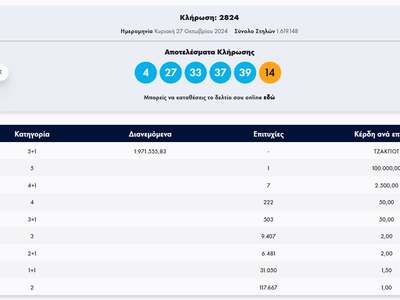 Έγινε η κλήρωση με αριθμό 2824 του ΤΖΟΚΕΡ το βράδυ της Κυριακής (27/10).