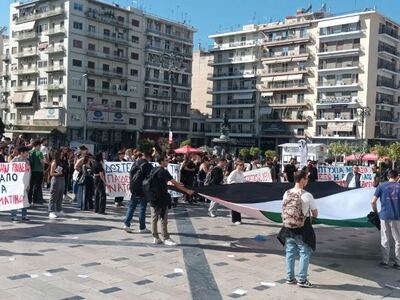 Οι συγκεντρωμένοι διαδήλωσαν και για την Παλαιστίνη, αναφέρει η σχετική ανακοίνωση, "απαιτώντας το σταμάτημα της σφαγής του παλαιστινιακού λαού", ενώ τα συνθήματα που κυριάρχησαν ήταν: «Πτυχία με αξία έξω η Ελλάδα από του ΝΑΤΟ τα σφαγεία», «Δώστε λεφτά για την Παιδεία» κ.α.