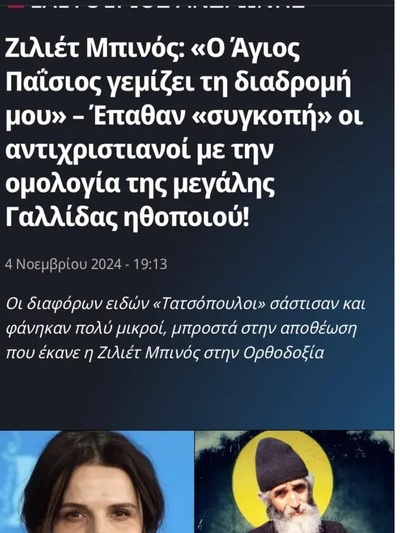 Όλα τυπικά μέχρις εδώ, αυτό που δεν ήταν τυπικό ήταν η ομιλία της Ζιλιέτ Μπινός στην οποία, όπως διαβάζουμε στο orthodoxianewsagency, είπε: