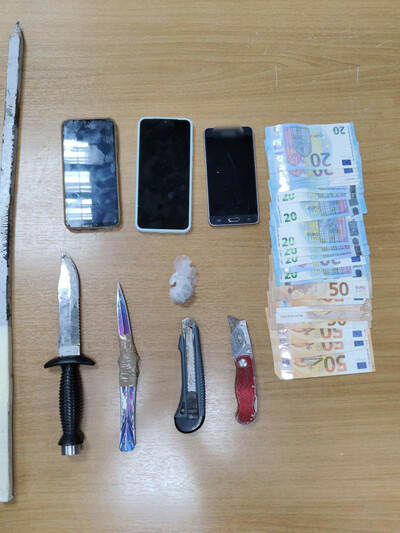 Κατασχέθηκαν -7- γραμμάρια ηρωίνης, μαχαίρια, φαλτσέτες, -700- ευρώ και κινητά τηλέφωνα