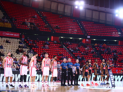 Ο Γιώργος Μπαρτζώκας παρέταξε την ομάδα του με τους Γουόκαπ, Ράιτ, Βεζένκοβ, Παπανικολάου και Ντόρσεϊ στην αρχική πεντάδα. Ο Γουόκαπ πέτυχε τους πρώτους πόντους του αγώνα με σουτ τριών πόντων, σερί 8-0 από τους ερυθρόλευκους στα πρώτα δύο λεπτά. Με το σκορ στο 24-18 έκλεισε η πρώτη περίοδος και τους Πειραιώτες να έχουν 4/9 τρίποντα.