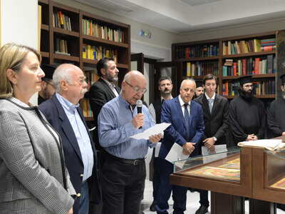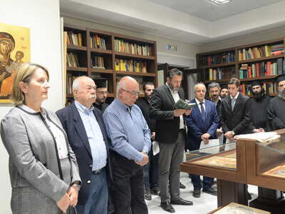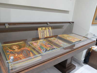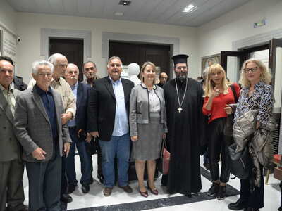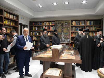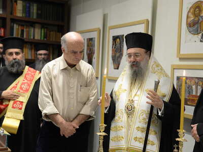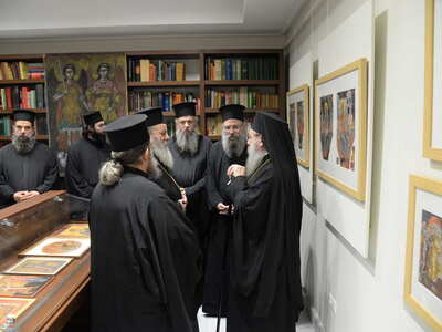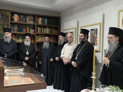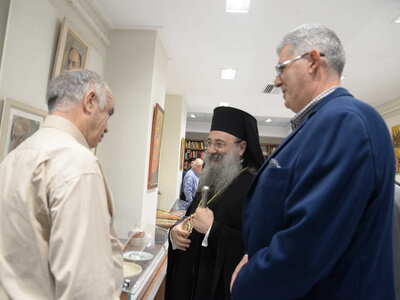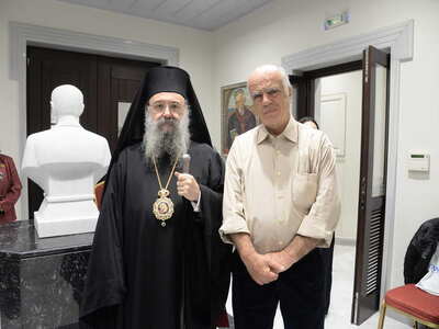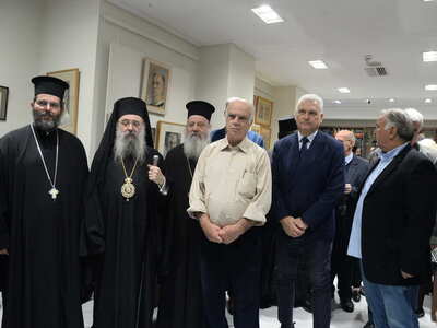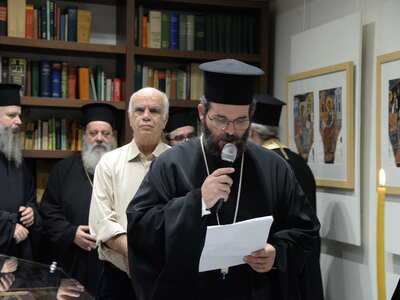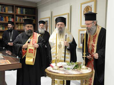Ενωρίτερα ο Σεβασμιώτατος ετέλεσε τον Αγιασμό των Εγκαινίων της Ἐκθέσεως, η οποία φιλοξενείται στην Στέγη Γραμμάτων «Κωστής Παλαμάς», στο Σπίτι του Κωστή Παλαμά στην Πάτρα.