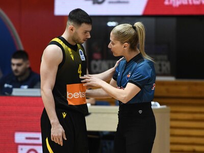 Μόλις 2:30 λεπτά μετά το πρώτο τζάμπολ της αναμέτρησης μεταξύ του Προμηθέα και της ΑΕΚ στην Πάτρα, η Βάσω Τσαρούχα χρειάστηκε να διακόψει την αναμέτρηση προσωρινά, ώστε να καταγραφούν υβριστικά συνθήματα στο κλειστό «Δ. Τόφαλος» και να γίνει η πρώτη προειδοποίηση.