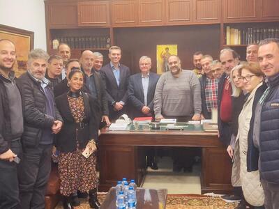 Στη συνάντηση ήταν παρόντες, από τον Εμπορικό Σύλλογο, ο πρόεδρος του Δ.Σ. Γιώργος Βαγενάς, ο γενικός γραμματέας Χρήστος Σολωμός, ο ταμίας Ανδρέας Στελλάτος και τα μέλη του Δ.Σ., Ερμιόνη Διονυσάτου και Γιάννης Ρούπας.