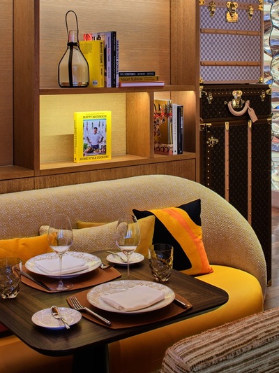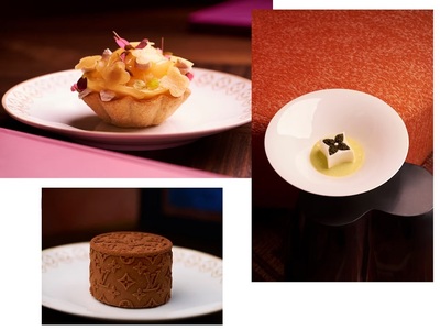 Οι αναγνωρισμένοι σεφ Christophe Ballanca και Mary George με την εποπτεία των Arnaud Donckele και Maxime Frédéric, που άνοιξαν το εστιατόριο του οίκου στο Σεν Τροπέ, ετοίμασαν ένα πρωτόγνωρο concept. Στο μενού ξεχωρίζουν πιάτα με αστακό και ραβιόλια μανιταριών με το μονόγραμμα Louis Vuitton αλλά προσφέρονται και burgers ή γλυκάκια κομψοτεχνήματα καθώς και σάντουιτς. Στη διακόσμηση επικρατεί η ιδέα της βιβλιοθήκης με διάφορες εκδόσεις ολόγυρα. Επιπλέον έχουν γίνει θεαματικές εικαστικές παρεμβάσεις των stars της σύγχρονης τέχνης Richard Prince, Yayoi Kusama, Supreme, Takashi Murakami, Stephen Sprouse.