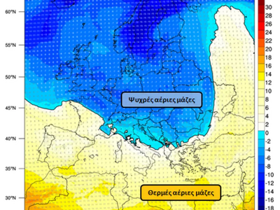 Σημαντική πτώση θα παρουσιάσει η θερμοκρασία στην Κεντρική και Ανατολική Ευρώπη από την Τετάρτη 20/11 λόγω της μεταφοράς ψυχρών αερίων μαζών. Σύμφωνα με τα τελευταία προγνωστικά δεδομένα του meteo.gr / Εθνικού Αστεροσκοπείου Αθηνών, αναμένονται θερμοκρασίες κοντά στο μηδέν και χιονοπτώσεις ακόμη και σε περιοχές χαμηλού υψομέτρου.