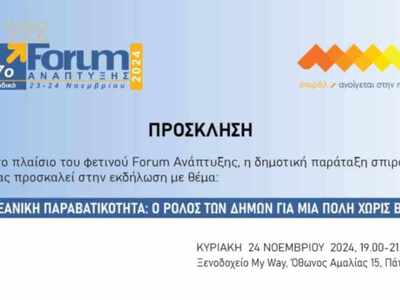 Στο πλαίσιο του φετινού Forum Aνάπτυξης, το σπιράλ προσκαλεί νέους, γονείς, εκπαιδευτικούς και το ευρύ κοινό σε μία εκδήλωση με θέμα: «Νεανική Παραβατικότητα: Ο ρόλος των Δήμων για μια πόλη χωρίς βία».