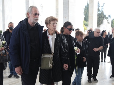 Οικογένεια, φίλοι και συνεργάτες συγκεντρώνονται στο Α' Νεκροταφείο Αθηνών για να αποχαιρετήσουν τον Μανούσο Μανουσάκη, έναν από τους πιο αγαπητούς και σπουδαίους σκηνοθέτες της ελληνικής τηλεόρασης και του κινηματογράφου.
