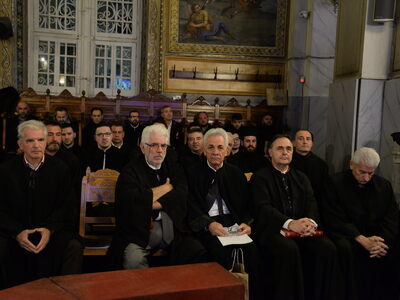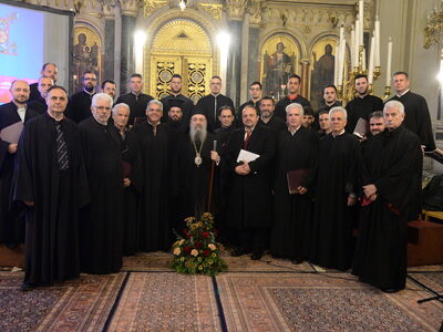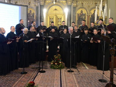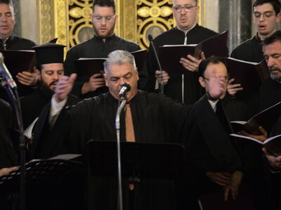 Ύμνους παρουσίασε ο χορός ψαλτικής «ΚΛΕΙΔΑ» και μονωδίες οι Πρωτοψάλτες: ο Άρχων Υμνωδός της Μεγάλης του Χριστού Εκκλησίας, κ. Ιωάννης Κόττορος, ο κ. Σπυρίδων Γαλάνης, ο κ. Παναγιώτης Παπασταύρου, ο κ. Νικόλαος Κυδωνιάτης και ο κ. Γεώργιος Μακρυγιάννης.