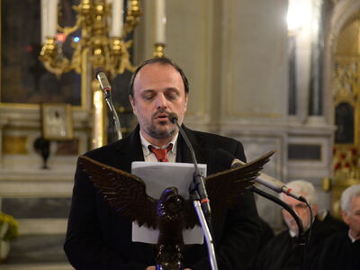 Ιδιαιτέρως ανεφέρθη στον τιμώμενο Πρωτοψάλτη κ. Δημήτριο Γαλάνη, ο οποίος εργάζεται με ήθος, τιμιότητα και αξιοπρέπεια κυρίως με ευλάβεια και με σεβασμό προς τον Επίσκοπο, τον ιερό Κλήρο και το χριστεπώνυμο Πλήρωμα της Ιεράς Μητροπόλεως Πατρών.