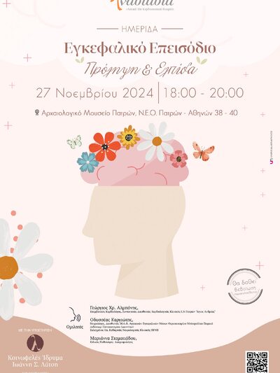 Η Αστική μη κερδοσκοπική Εταιρεία Αναστασία με έδρα την Πάτρα, οδός Ναυαρίνου 10-12, πραγματοποιεί αυτήν την Τετάρτη 27 Νοεμβρίου 2024 στις 18.00 έως τις 20.00 στην αίθουσα του νέου Αρχαιολογικού Μουσείου Πατρών Ημερίδα στο πλαίσιο της πρώτης πανελλήνιας εκστρατείας Ενημέρωσης και Πρόληψης με τίτλο “Εγκεφαλικό Επεισόδιο: Πρόληψη & Ελπίδα”.