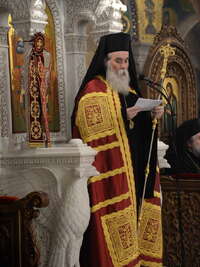 Στόν πανηγυρικό Ἑσπερινό ἐχοροστάτησε ὁ Σεβασμιώτατος Μητροπολίτης Κισάμου καί Σελίνου, τῆς Ἐκκλησίας τῆς Κρήτης, κ. Ἀμφιλόχιος, ὁ ὁποῖος ἐκήρυξε ἐμπνευσμένα τόν θεῖο λόγο.