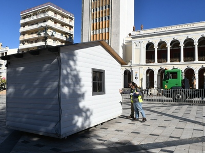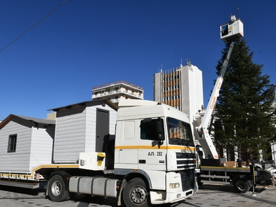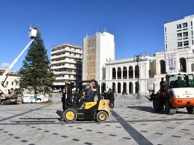 Συνεχίζονται με γρήγορους ρυθμούς από τους εργαζόμενους του Δήμου Πατρέων, οι εργασίες για το στήσιμο του Χριστουγεννιάτικου χωριού στην πλατεία Γεωργίου, που περιλαμβάνει το Χριστουγεννιάτικο δέντρο την φάτνη και τα γιορτινά «σπιτάκια».