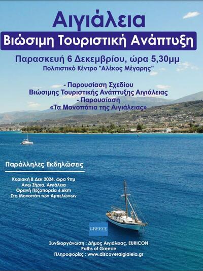 Στην εκδήλωση θα παρουσιαστεί ο ολοκληρωμένος σχεδιασμός για την τουριστική ανάπτυξη της Αιγιάλειας σε βάθος 5ετίας αλλά και τα 16 μονοπάτια της περιοχής που μπορούν να αξιοποιηθούν τουριστικά.