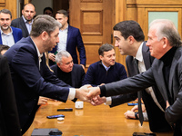 Σήμερα ανήμερα του Αγίου Νικολάου συνεδριάζει η Κοινοβουλευτική Ομάδα του ΠΑΣΟΚ και ο Νίκος Ανδρουλάκης δέχθηκε ευχές από όλους τους βουλευτές του κόμματός του και τα χαμόγελα περίσσευαν όπως και τα κεράσματα.