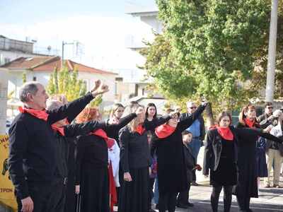 Τιμάμε τους αγωνιστές και τις αγωνίστριες της Εθνικής Αντίστασης, του ΕΑΜ, της ΕΠΟΝ και του ΕΛΑΣ, εκείνους κι εκείνες που πάλεψαν με το όπλο, όλους όσους κράτησαν ηρωική στάση στα βασανιστήρια από τους κατακτητές και τους Ταγματασφαλίτες, στις φυλακές και τις εξορίες, αλλά και στα εκτελεστικά αποσπάσματα, στη βίλα Λυμπερόπουλου, στο Γηροκομειό, στα Προσφυγικά, τις χιλιάδες λαού που έβαλαν το δικό τους λιθαράκι στον απελευθερωτικό αγώνα, και εκείνα τα αμούστακα ακόμα παιδιά μαζί με τους συγκρατούμενους τους κοίταξαν κατάματα το θάνατο στο κτήμα Μουρτζούχου και πότισαν το σπόρο της λευτεριάς… γιατί «τη λευτεριά δεν τη ζητάν με παρακάλια, τήνε παίρνουνε με τα δικά τους χέρια μοναχοί» όπως έγραψε και ο σπουδαίος Κώστας Βάρναλης.