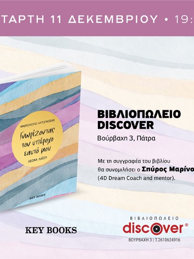 Το βιβλιοπωλείο Discover και οι εκδόσεις Keybooks παρουσιάζουν το βιβλίο «Γνωρίζοντας τον υπέροχο εαυτό μου» της Λεώνας Λαΐου.