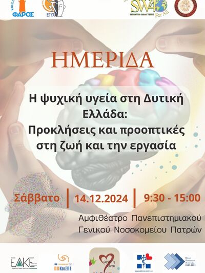 Η ημερίδα με θέμα "Ψυχική υγεία στη Δυτική Ελλάδα: Προκλήσεις και προοπτικές στη ζωή και την εργασία", έχει ως στόχο να ευαισθητοποιήσει την κοινωνία και τις επιχειρήσεις, σχετικά με τη σημασία της ψυχικής υγείας στην εργασία, αλλά και να λειτουργήσει ως σημείο συνάντησης για εργοδότες, υπευθύνους ανθρώπινου δυναμικού, επαγγελματίες και φορείς ψυχικής υγείας καθώς και πρόσωπα με ψυχοκοινωνικά προβλήματα που θέλουν να εργαστούν, προωθώντας έναν ανοιχτό διάλογο και πρακτικές λύσεις για τα ζητήματα ψυχικής υγείας στην ζωή και την απασχόληση.