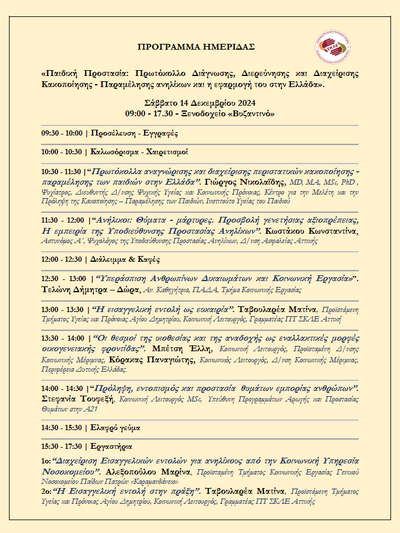 " Παιδική Προστασία: Πρωτόκολλο Διερεύνησης, Διάγνωσης και Διαχείρισης ΚΑΠΑ-Π και η εφαρμογή του στην Ελλάδα", το Σάββατο 14 Δεκεμβρίου 2024 στην Πάτρα (Ξενοδοχείο Βυζαντινό, Ρήγα Φεραίου 106).