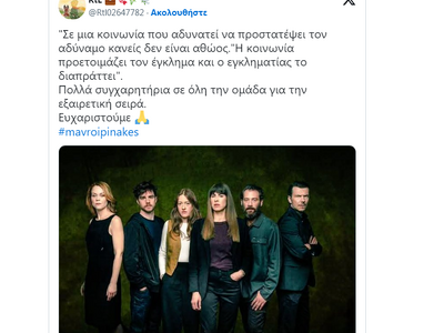 Το Twitter κατακλύστηκε από μηνύματα αποθέωσης και έδωσε το σύνθημα να μπει η σειρά στο Netflix προκειμένου να γίνει γνωστή σε μεγαλύτερο κοινό. «Τέτοιο ΕΠΟΣ δεν θα ξαναβγεί σε ελληνική σειρά. Αρχή μέση και τέλος άρτια συνδεδεμένο και με ένα ανατρεπτικό τέλος που το παρακολουθείς με ΚΟΜΜΕΝΗ ΑΝΑΣΑ», έγραψε κάποιος.
