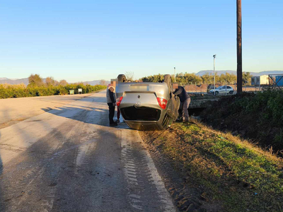 Συγκεκριμένα το Ι.Χ. αυτοκίνητο που βλέπετε στις φωτογραφίες τουμπαρισμένο, κινούνταν από το Αγγελόκαστρο προς το Αγρίνιο. Για λόγου που διερευνά η Τροχαία, βγήκε από την πορεία του και ανατράπηκε.
