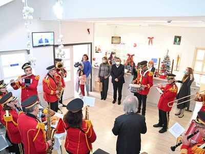 Στις επισκέψεις συμμετείχε και η Δημοτική Μουσική που έπαιξε γιορτινές μελωδίες.
