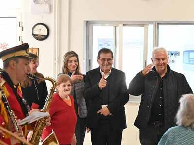 Συνοδευόταν από την Αντιδήμαρχο Υγείας – Πρόνοιας, Βίβιαν Σαμούρη, και τη Δημοτική Μουσική που έπαιξε γιορτινές μελωδίες