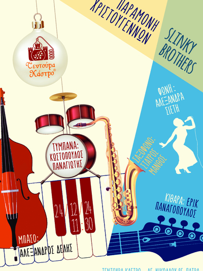 Ένα φανταστικό soul / funk live από το συγκρότημα “SLINKY BROTHERS” και την Αλεξάνδρα Σιετή αλλά και ζεστά cocktails “Patras’ Princess” για το κρύο, με Τεντούρα και Μαυροδάφνη θα απολαύσουν όσοι περάσουν την ερχόμενη Τρίτη 24-12, παραμονή των Χριστουγέννων από το κατάστημα - πρατήριο της ποτοποιίας ΤΕΝΤΟΥΡΑ ΚΑΣΤΡΟ – Χάχαλης, στην Αγ. Νικολάου 95 και Υψηλάντου στην Πάτρα!