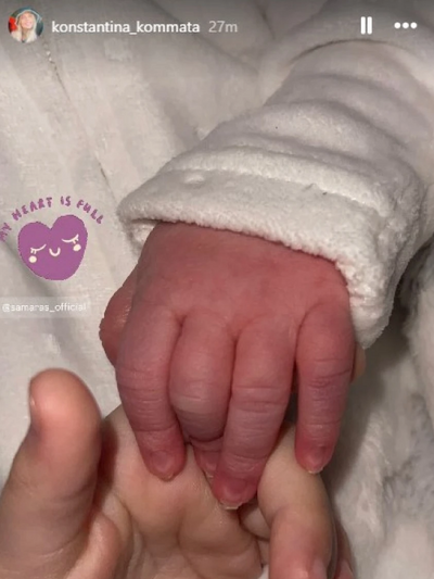 Η Κωνσταντίνα Κομματά και ο Γιώργος Σαμαράς έγιναν γονείς για δεύτερη φορά. Σε story που δημοσίευσε στον προσωπικό της λογαριασμό στο Instagram, η ηθοποιός μοιράστηκε μια φωτογραφία όπου κρατά το χέρι του νεογέννητου μωρού τους, γράφοντας στη λεζάντα: «Η καρδιά μου είναι γεμάτη».