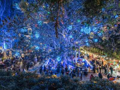 Στο κέντρο του κήπου η Χριστουγεννιάτικη Αγορά, με περισσότερες από 25 επιχειρήσεις που προσφέρουν υπέροχες επιλογές για δώρα, φαγητό, ποτά και γλυκίσματα.