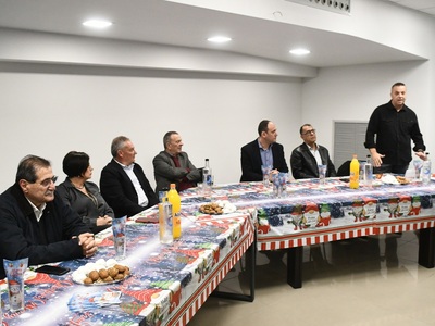 Στον χαιρετισμό του, ο Δήμαρχος ευχήθηκε υγεία και δύναμη ενόψει των εορταστικών ημερών και για το νέο έτος και κάλεσε σε εγρήγορση τους εργαζόμενους και το λαό, τόσο απέναντι στα νέα μέτρα που ετοιμάζονται απέναντί του από την Κυβέρνηση και όσους υπηρετούν την ίδια πολιτική, αλλά και για τις εξελίξεις με τα πολεμικά μέτωπα στην ευρύτερη περιοχή, την εμπλοκή της χώρας σ’ αυτά.