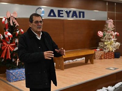 Με ευχές για τις γιορτινές μέρες και το νέο έτος, χαιρετισμό απεύθυνε ο πρόεδρος της ΔΕΥΑΠ, σημειώνοντας: «Είναι μια ευχάριστη στιγμή για εμάς, τους εργαζόμενους και τα παιδιά μας, που πραγματοποιούμε αυτή τη γιορτή σήμερα, στο νέο μας κτίριο».