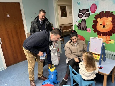 Ο κ. Σκιαδαρέσης ευχαρίστησε θερμά τη διοίκηση, το ιατρικό, νοσηλευτικό και βοηθητικό προσωπικό, καθώς κι όλους τους εργαζόμενους για το σημαντικό έργο που επιτελούν και παρέδωσε είδη πρώτης ανάγκης (αναλώσιμα, χαρτικά, ιατρικά είδη, κ.α.). Τα στελέχη της παράταξης αντάλλαξαν ευχές μ’ όλο το προσωπικό, ενώ ακολούθησε επίσκεψη στους θαλάμους των νοσηλευόμενων παιδιών, στα οποία τα μέλη της παράταξης προσέφεραν συμβολικά δώρα και τους ευχήθηκαν να έχουν καλή και ταχεία ανάρρωση, ώστε τις γιορτές να βρίσκονται μέσα στη ζεστασιά του οικογενειακού τους περιβάλλοντος.