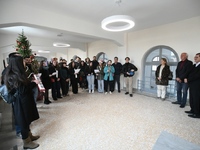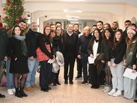 Το Δημαρχείο της Πάτρας, πλημμυρίζει από σήμερα το πρωί με εορταστικές μελωδίες και κάλαντα των Χριστουγέννων, που μικροί και μεγάλοι έψαλλαν στον Δήμαρχο Πατρέων, Κώστα Πελετίδη και στους Αντιδημάρχους, τονίζοντας το γιορτινό κλίμα των ημερών, ενώ αντάλλαξαν ευχές και δέχτηκαν τα γλυκίσματα των ημερών.
