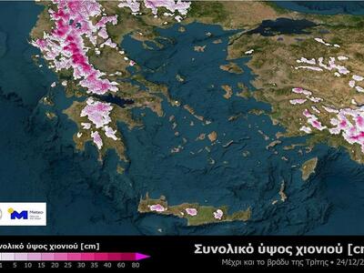 Το σκηνικό του καιρού είναι άκρως χριστουγεννιάτικο μετά από αρκετά χρόνια. Πολλές περιοχές πρόκειται να ντυθούν στα… λευκά, αφού αναμένονται χιονοπτώσεις σύμφωνα με τον χάρτη που ετοίμασε το Meteo. Συγκεκριμένα, χιονοπτώσεις θα εκδηλωθούν και κατά τη διάρκεια της Τρίτης (24/12) στα ορεινά της ηπειρωτικής χώρας και της Κρήτης, αλλά και σε περιοχές της Δυτικής Μακεδονίας και της Ηπείρου με χαμηλότερο υψόμετρο.