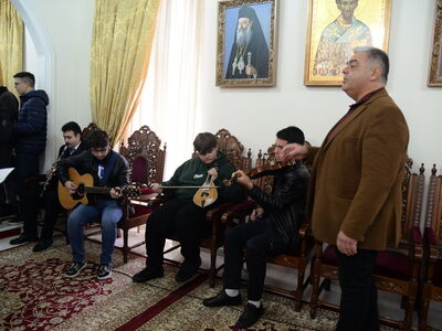 Οἱ μαθητές τῆς Σχολῆς τῆς Βυζαντινῆς Μουσικῆς τῆς Ἱερᾶς Μητροπόλεως Πατρῶν.