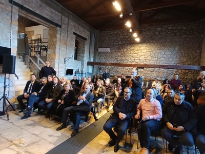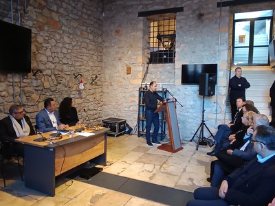 Ο πρόεδρος της ΔΕΥΑ Αιγιαλείας κ. Γιώργος Ντίνος, μίλησε για μια ιστορική ημέρα, καθώς αρχίζει η κατασκευή ενός έργου που φέρει την ταυτότητα του αειμνήστου οραματιστή αυτοδιοικητικού Δημάρχου Δημήτρη Καλογερόπουλου, ζητώντας να τηρηθεί ενός λεπτού σιγή στη μνήμη του. «Αν ο Βιολογικός Καθαρισμός αποτέλεσε το έργο της δεκαετίας του 1990, το Διυλιστήριο νερού του ποταμού Σελινούντα θα είναι το έργο που θα σηματοδοτήσει τη δεκαετία 2020-2030» σημείωσε ο κ. Ντίνος συμπληρώνοντας ότι η ΔΕΥΑ Αιγιαλείας έχει περάσει στη νέα εποχή με αξιοποίηση τηλεμετρίας, τηλεδιοίκησης, ψηφιακά υδρόμετρα και επέκταση του δικτύου του Βιολογικού Καθαρισμού σε όλο το μήκος της ακτογραμμής του Δήμου, εκτελώντας αυτή τη στιγμή έργα συνολικού προϋπολογισμού άνω των 80 εκ. ευρώ, δείχνοντας έτσι την εξέλιξή της σε σύγχρονη και αποτελεσματική επιχείρηση. «Αυτό βεβαίως οφείλεται στις δυνατότητες του στελεχιακού της δυναμικού, που διαδραματίζει κύριο ρόλο στην πρόοδό της» συνέχισε ο ίδιος, ευχαριστώντας τους μελετητές για την άρτια υποβολή του φακέλου και φυσικά το Υπουργείο Εσωτερικών, που ενέταξε το μνημειώδες έργο στο πρόγραμμα «Αντώνης Τρίτσης».