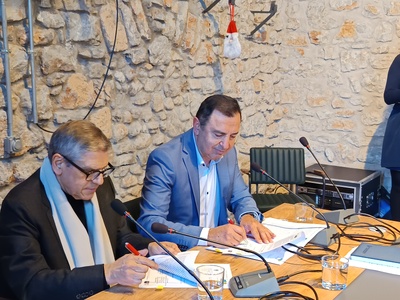 Με τη σειρά του, ο αντιπρόεδρος της ΔΕΥΑ Αιγιαλείας κ. Δημήτρης Ελευθεριώτης έκανε λόγο για ένα έργο «πρώτης γραμμής» και παράλληλα δεν παρέλειψε να επισημάνει ότι η ΔΕΥΑ Αιγιαλείας βρίσκεται ανάμεσα στις 5 καλύτερες της χώρας και ταυτόχρονα στις πιο υγιείς οικονομικά, έχοντας διαρκώς θετικό ισοζύγιο και διαθέτοντας υψηλού επιπέδου στελεχιακό δυναμικό, που μαζί με το διοικητικό συμβούλιο εργάζονται με εξαιρετικά αποτελέσματα. Για ένα έργο πρωτοποριακό, στο οποίο θα αξιοποιηθούν τα πιο σύγχρονα υλικά, δηλαδή τόσο κεραμικές μεμβράνες όσο και αγωγοί κατασκευασμένοι με τεχνολογία τέτοια που να αντέχουν για μια ζωή, μίλησε ο εκπρόσωπος της αναδόχου εταιρείας «Κ/ΞΙΑ ΜΕΣΟΓΕΙΟΣ AQUA Α.Ε.-ΑΤΕΣΕ Α.Ε.» κ. Διονύσιος Γεωργόπουλος. Τέλος, ο Τεχνικός Διευθυντής της ΔΕΥΑ Αιγιαλείας κ. Παναγιώτης Νικολόπουλος αναφέρθηκε με λεπτομέρειες στα τεχνικά χαρακτηριστικά του έργου του διυλιστηρίου. Αφού περιέγραψε τη σημερινή κατάσταση, μιας και η πόλη του Αιγίου υδροδοτείται αποκλειστικά από γεωτρήσεις, οι οποίες βρίσκονται σε περιοχές που καλλιεργούνται και τα τελευταία χρόνια παρουσιάζεται στο νερό σταδιακή αύξηση των νιτρικών, άρα είναι επιτακτική η ανάγκη της βελτίωσης της ποιότητας του νερού, μίλησε και για την πτώση της στάθμης του υδροφόρου ορίζοντα, κάνοντας ακόμα πιο κοστοβόρα την άντληση του νερού. Με την κατασκευή του διυλιστηρίου Σελινούντα, τα δύο αυτά προβλήματα επιλύονται σε μεγάλο βαθμό, αφού εξασφαλίζεται νερό άριστης ποιότητας με τη χρήση μεμβρανών αλλά και σε επαρκή ποσότητα, με την εξοικονόμηση περισσότερων από 2 εκατομμυρίων κιλοβατώρων ανά έτος!