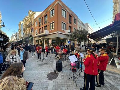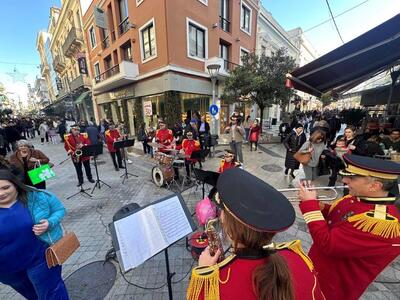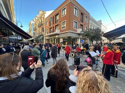 Στις 12.00 το μεσημέρι η Ορχήστρα Jazz της Δημοτικής Μουσικής έδωσε το δικό της παρών με την πραγματοποίηση συναυλίας στη διασταύρωση της Γεροκωστοπούλου με την Ρήγα Φεραίου.