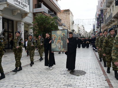 Νωρίτερα στον Ιερό Μητροπολιτικό Ναό της Ευαγγελίστριας, τελέστηκε η Αρχιερατική θεία λειτουργία χοροστατούντος του κ.κ. Χρυσόστομου, παρουσία εκπροσώπων αρχών και φορέων.