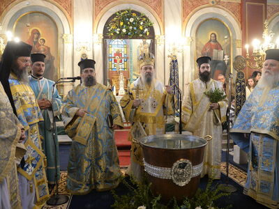 Ὁ Σεβασμιώτατος Μητροπολίτης Πατρῶν κ.κ. Χρυσόστομος, ἐχοροστάτησε στόν Ὂρθρο, ἐτέλεσε τήν Θεία Λειτουργία καί τόν Μεγάλο Ἁγιασμό, στόν περικαλλῆ Μητροπολιτικό Ναό τῆς Εὐαγγελιστρίας Πατρῶν, ἐν πληθούσῃ Ἐκκλησίᾳ, μέ τήν συμμετοχή ὃλων τῶν Ἀρχῶν, Πολιτικῶν, Στρατιωτικῶν, Σωμάτων Ἀσφαλείας κ. ἂ.