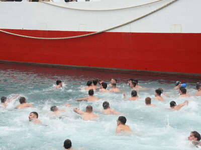 Δεκάδες νέων ἒπεσαν στά νερά τοῦ Πατραϊκοῦ κόλπου, γιά νά ἀνασύρουν τόν Τίμιο Σταυρό, γεμᾶτοι ἐνθουσιασμό, πίστη στό Θεό καί μέ παλμό γιά τά ἑλληνοχριστιανικά ἰδεώδη καί τήν παράδοση τῆς Πατρίδος μας.