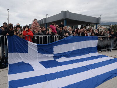 Οἱ νέοι ἃπλωσαν μιά τεράστια Ἑλληνική Σημαία στήν θάλασσα καί ἒψαλαν μέ παλμό καί ἐνθουσιασμό τόν Ἐθνικό Ὓμνο, ἐνῶ βγαίνοντας ἀπό τήν θάλασσα, κρατώντας τόν τίμιο Σταυρό καί τήν Ἑλληνική Σημαία ἁπλωμένη, ἐφώναζαν μέ ὃλη τήν δύναμη τῆς ψυχῆς τους: «Ζήτω ἡ Ὀρθοδοξία. Ζήτω ἡ Ἑλλάδα».