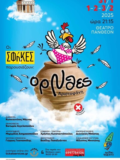 Οι ΣΦήγΚΕΣ φέτος βάζουν φτερά και πραγματεύονται το έργο του Αριστοφάνη «ΟρΝθες» μια παραγωγή που κλείνει το μάτι στα ευτράπελα του σήμερα, της πολιτικής, της αναξιοκρατίας και της φαυλότητας που ταλανίζει την κοινωνία μας.