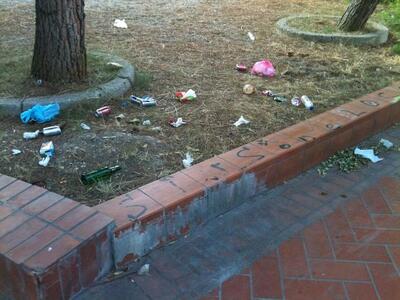 Σήμερα το πρωί η κεντρική πλατεία με την παιδική χαρά στο Ρίο, απέναντι από τον σταθμό του ΟΣΕ και τα πολλά μαγαζιά εστίασης, παρουσίαζε αυτή την εικόνα.