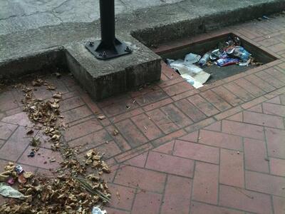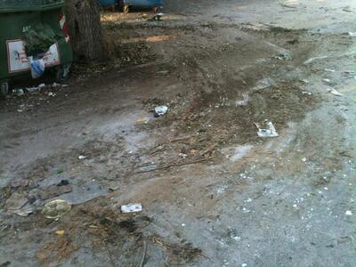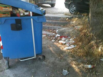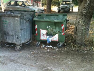 Στο σημείο που κάθε Τρίτη φιλοξενείται και η λαϊκή, γίνεται μόνο μια τυπική αποκομιδή απορριμμάτων και μάλιστα με σπασμένους κάδους (ΦΩΤΟ) και τα υπολείμματα στο δρόμο (ΦΩΤΟ).