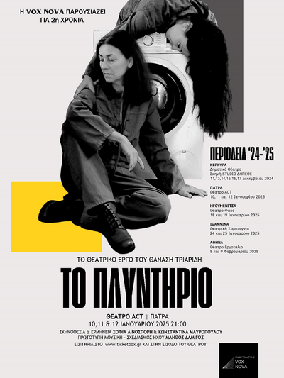 Το θέατρο act στο πάνω μέρος στις σκάλες Γεροκωστοπούλου στην Πάτρα, παρουσιάζει το έργο του Θανάση Τριαρίδη «Το Πλυντήριο» στις 10, 11 και 12 Ιανουαρίου 2025 στις 9 το βράδυ.